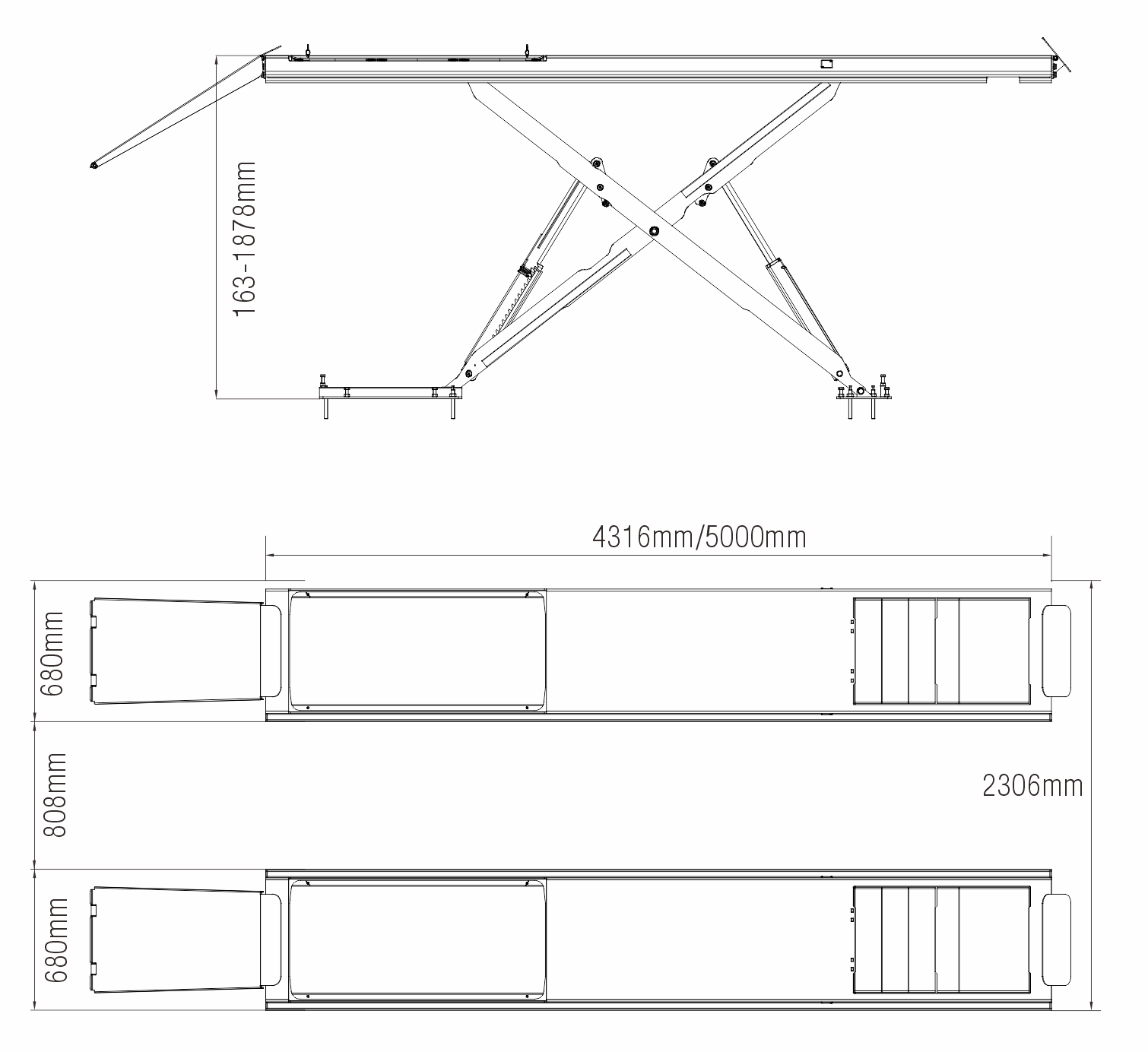 ♦ No cross rails or torsion bars between lifting platforms (for maximum accessibility in the working area).